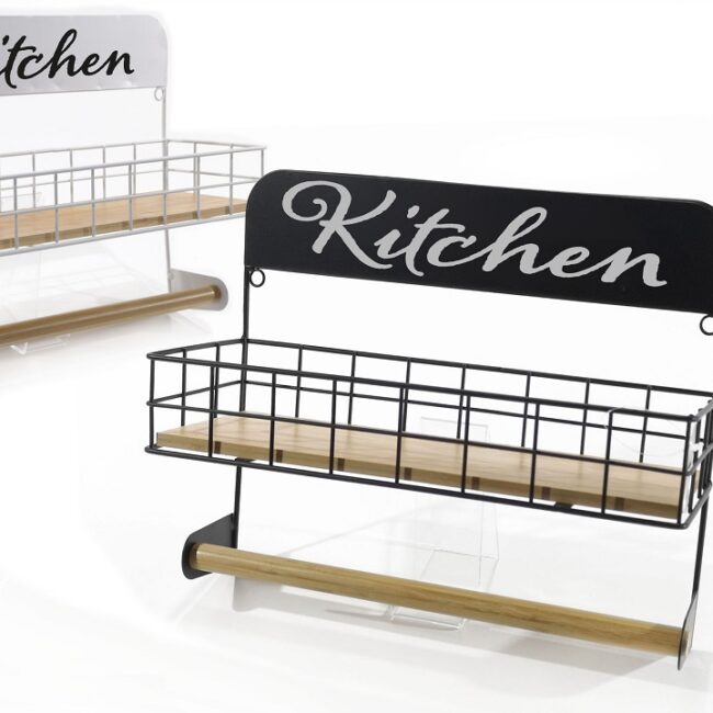 Ράφι Με Θήκη Ρολού Κουζίνας Μέταλλο/Μπαμπού 34x13x28cm Σε 2 Χρώματα