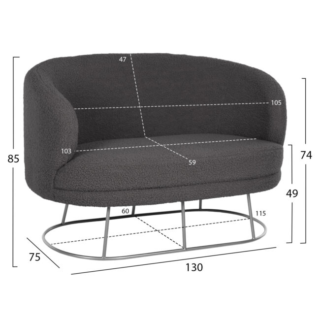 ΚΑΝΑΠΕΣ 2ΘΕΣΙΟΣ ARIEN HM8492.21 ΓΚΡΙ ΜΠΟΥΚΛΕ ΜΕ ΑΣΗΜΙ ΒΑΣΗ 130X75X85Yεκ.