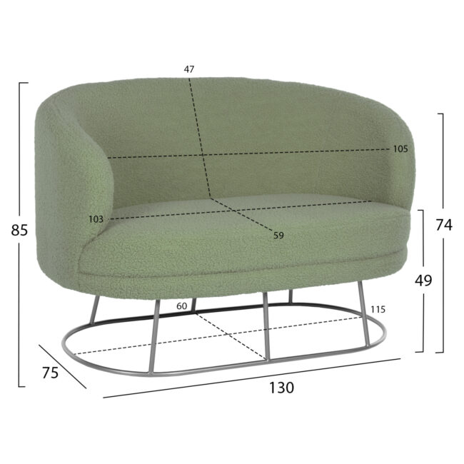 ΚΑΝΑΠΕΣ 2ΘΕΣΙΟΣ ARIEN HM8492.27 ΦΥΣΤΙΚΙ ΜΠΟΥΚΛΕ ΜΕ ΑΣΗΜΙ ΒΑΣΗ 130x75x85Υ εκ.