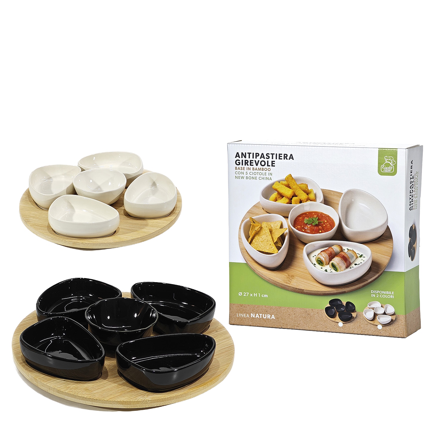 Δίσκος Σερβιρίσματος Ορεκτικών Με 5 Μπολ Και Περιστρεφόμενη Βάση Μπαμπού/Πορσελάνη Φ27x1cm