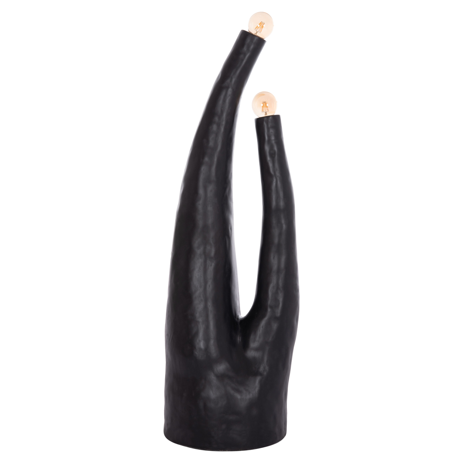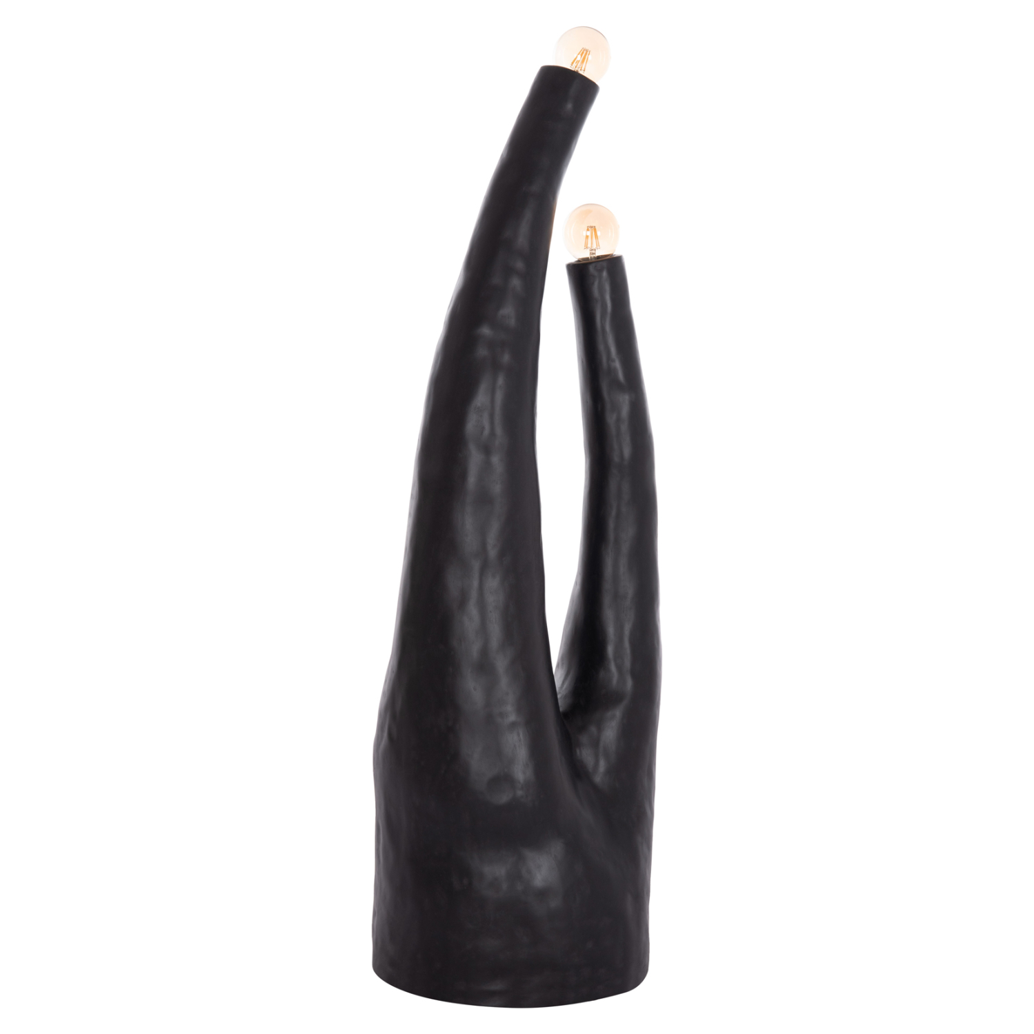 Το χειροποίητο και επιβλητικό διακοσμητικό φωτιστικό δαπέδου TUSKEN έχει ακανόνιστο αλλά μοντέρνο design με δύο λάμπες σε διαφορετικά ύψη. Διαθέτει μεγάλο καλώδιο τροφοδοσίας με διακόπτη on/off. Είναι κατασκευασμένο εξολοκλήρου από Fiber Cement σε ΜΑΥΡΟ χρώμα και αποτελεί ιδανικό συμπλήρωμα τόσο για το σπίτι, όσο και για επαγγελματικούς χώρους, όπως ξενοδοχεία, AirBnB, κτλ.