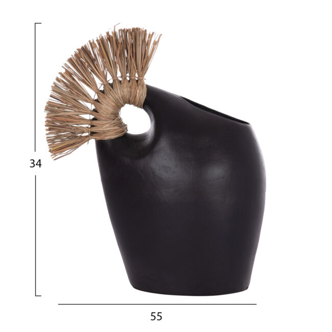 Το επιτραπέζιο χειροποίητο διακοσμητικό βάζο ALICA2 είναι ένα πολύ ιδιαίτερο διακοσμητικό στοιχείο για κάθε χώρο. Είναι κατασκευασμένο εξολοκλήρου από τερακότα σε ΒΥΣΣΙΝΙ χρώμα, ενώ διαθέτει και ένα χερούλι επενδυμένο με αποξηραμένο grass, και ένα φαρδύ στόμιο.