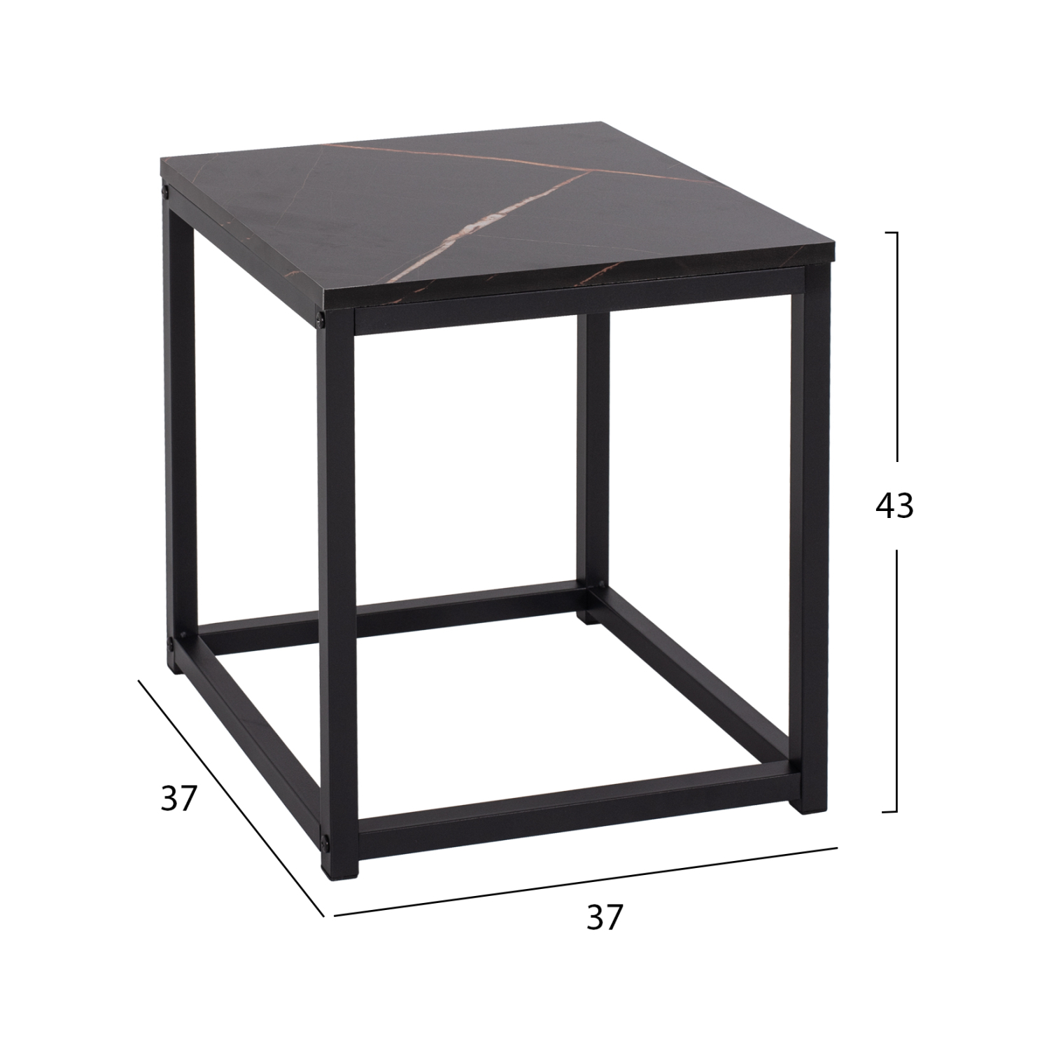 ΗΜ8762.13 τραπεζάκια σαλονιού—– Τα τραπεζάκια ζιγκόν GRELAY θα σας ενθουσιάσουν με το στυλ και την πρακτικότητά τους. Μπορείτε να δημιουργήσετε πρωτότυπες διακοσμητικές συνθέσεις, δίνοντας νέα πνοή στον χώρο σας με αυτό το σετ. Πρόκειται για 2 τετράγωνα τραπεζάκια ένα ψηλότερο κι ένα πιο κοντό που αποθηκεύεται κάτω από το ψηλό. Τα πόδια σε στυλ βάση, είναι μεταλλικά σε μαύρο χρώμα, ενώ οι επιφάνειές τους είναι σε απομίμηση μαύρου μαρμάρου από MDF.