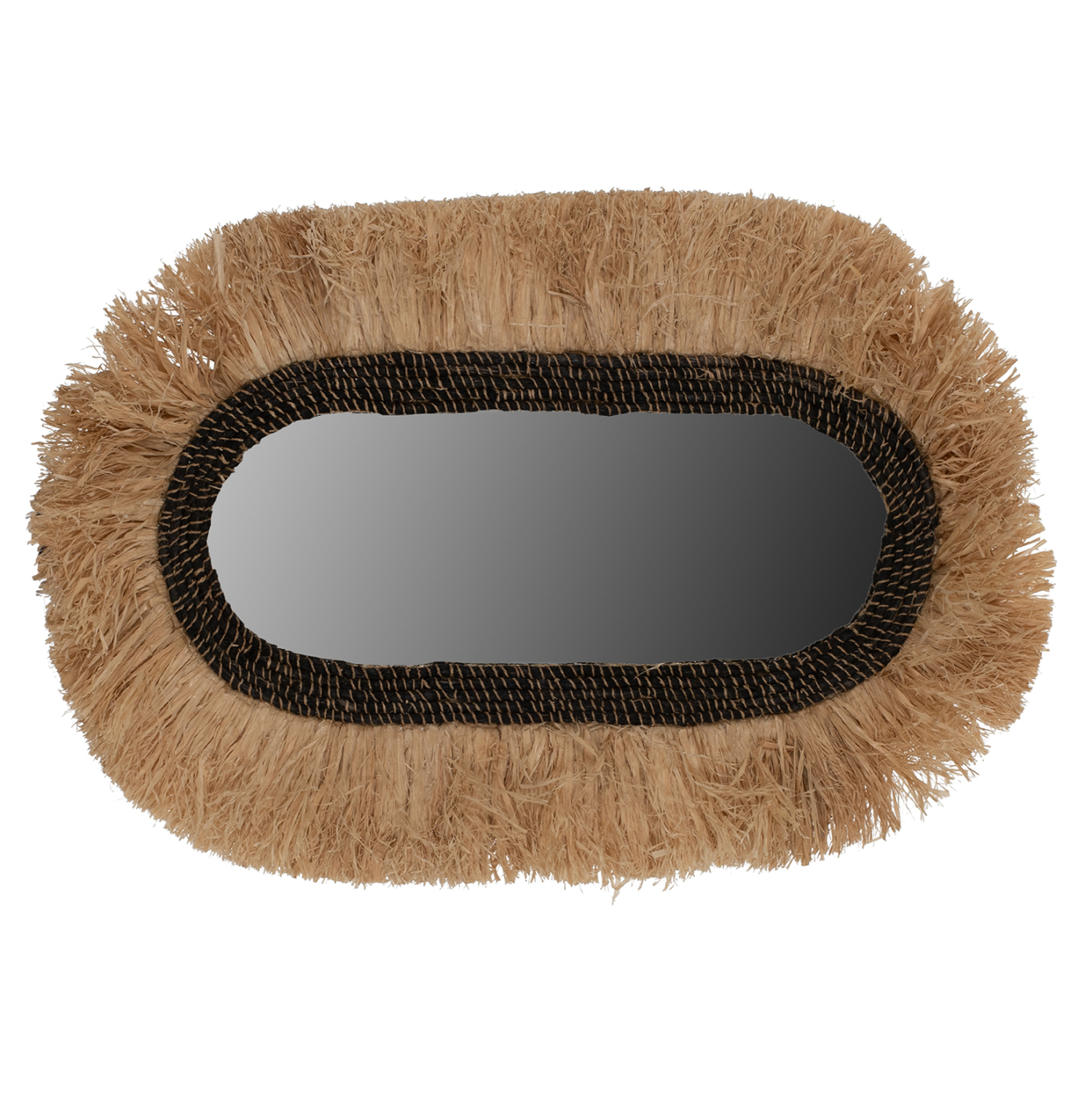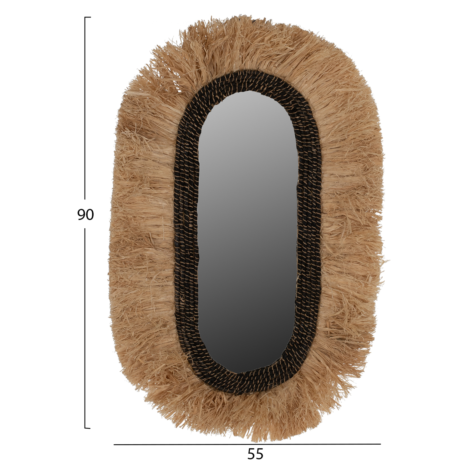 O οβάλ καθρέπτης ΗΜ7745 είναι πραγματικά ένα εντυπωσιακό κομμάτι στην διακόσμηση του χώρου σας! Το design του είναι όμορφο και λιτό με πλαίσιο από ίνες σιζάλ σε φυσικό χρώμα και δέσιμο κοντά στον καθρέπτη με ανακυκλωμένες ίνες κάνναβης Μανίλας σε μαύρο χρώμα. Ένας διακοσμητικός καθρέπτης που θα δώσει μια άλλη αισθητική στον χώρο σας και ταυτόχρονα θα αποτελέσει ένα όμορφο εστιακό σημείο αναφοράς.