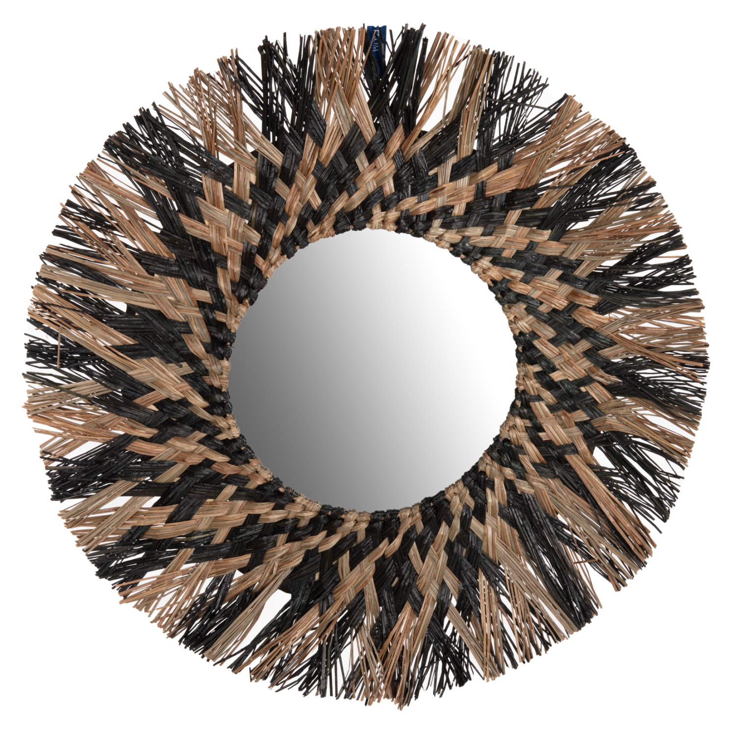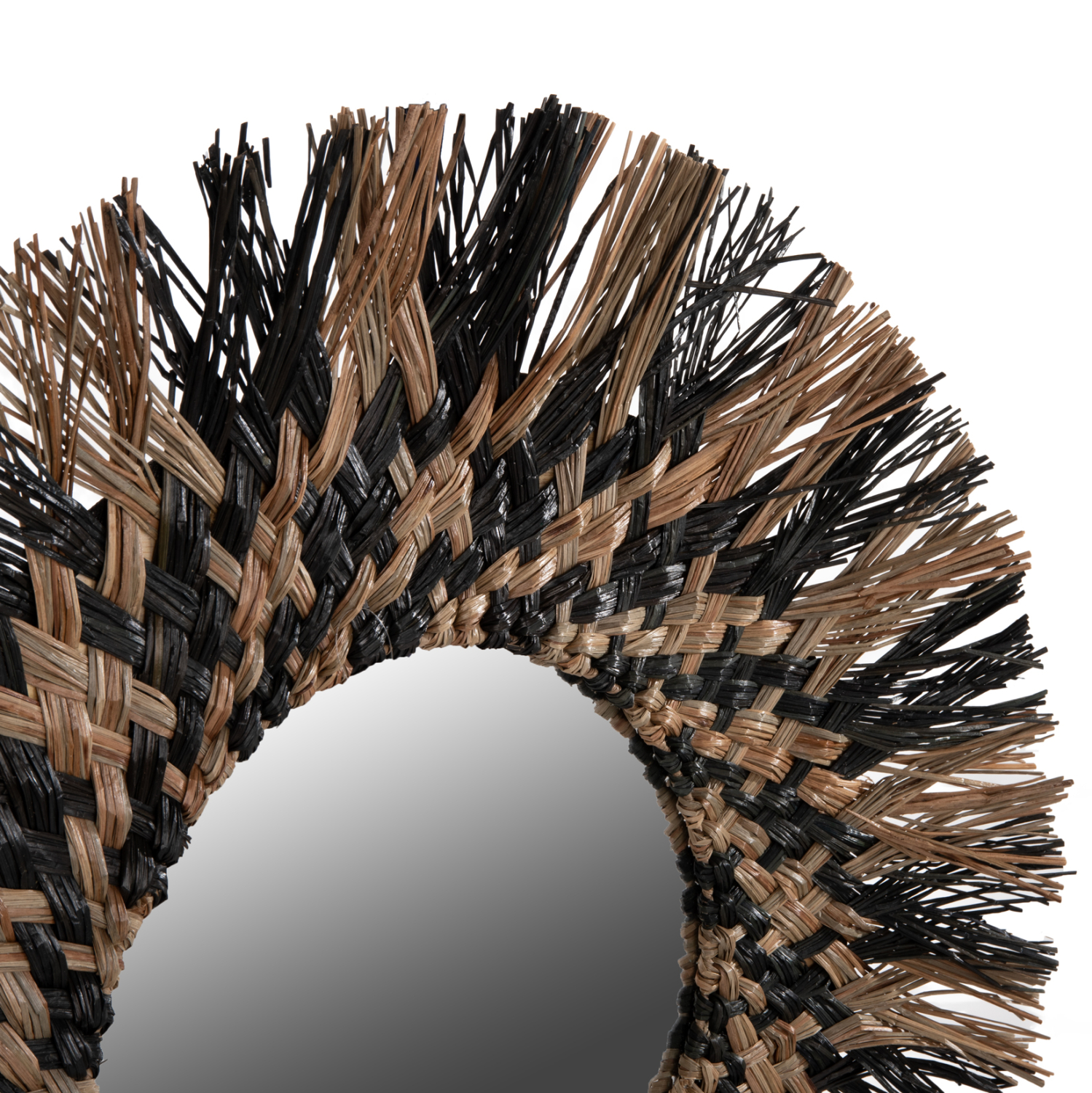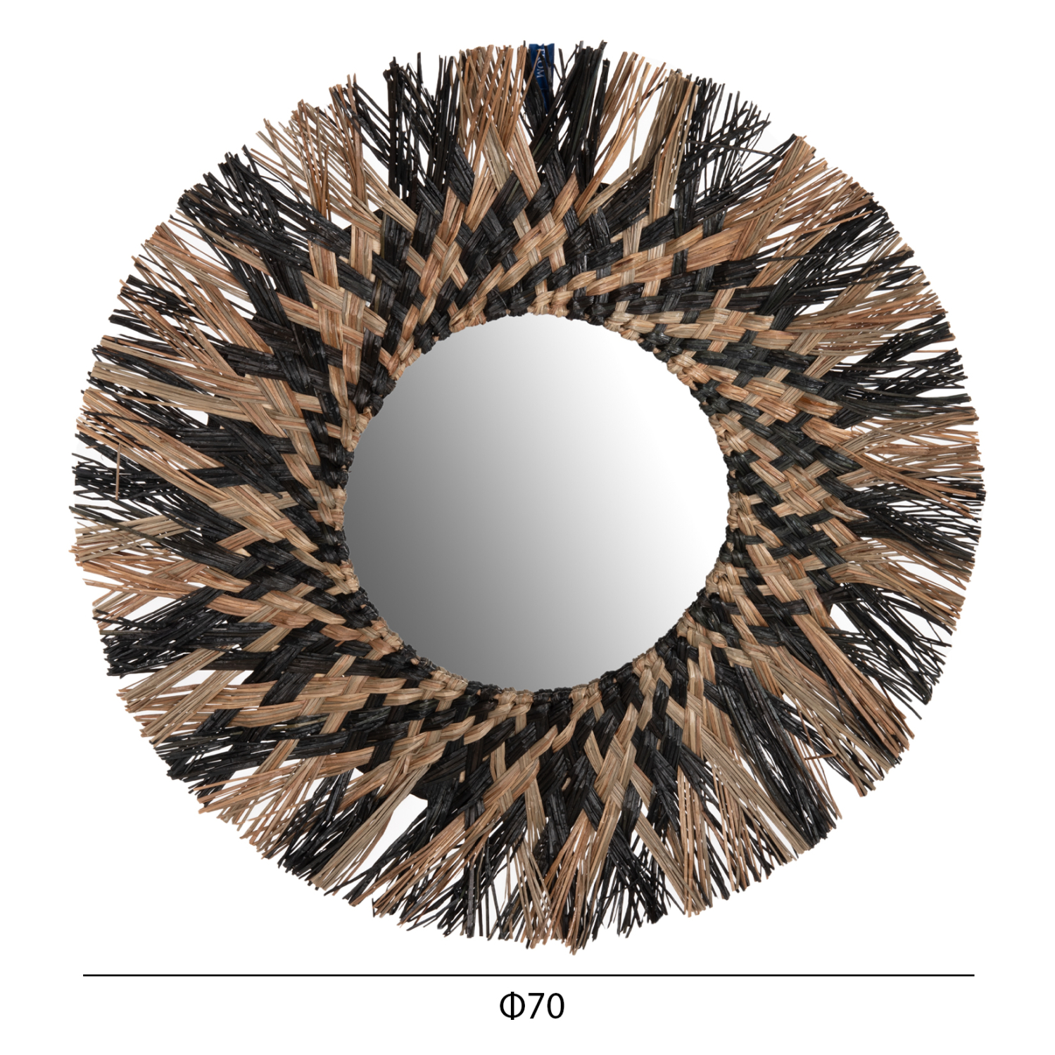 O καθρέπτης ΗΜ7833, είναι πραγματικά ένα εντυπωσιακό κομμάτι στην διακόσμηση του χώρου σας! Το design του είναι ξεχωριστό με πλαίσιο από το χόρτο Mendong σε πλέξη, το οποίο στο κέντρο του «φιλοξενεί» τον καθρέπτη, ενώ είναι σε ΜΑΥΡΟ ΚΑΙ ΦΥΣΙΚΟ χρώμα. Το χαρακτηριστικό είναι ότι ο καθρέφτης είναι μικρός και αποτελεί κυρίως διακοσμητικό στοιχείο.