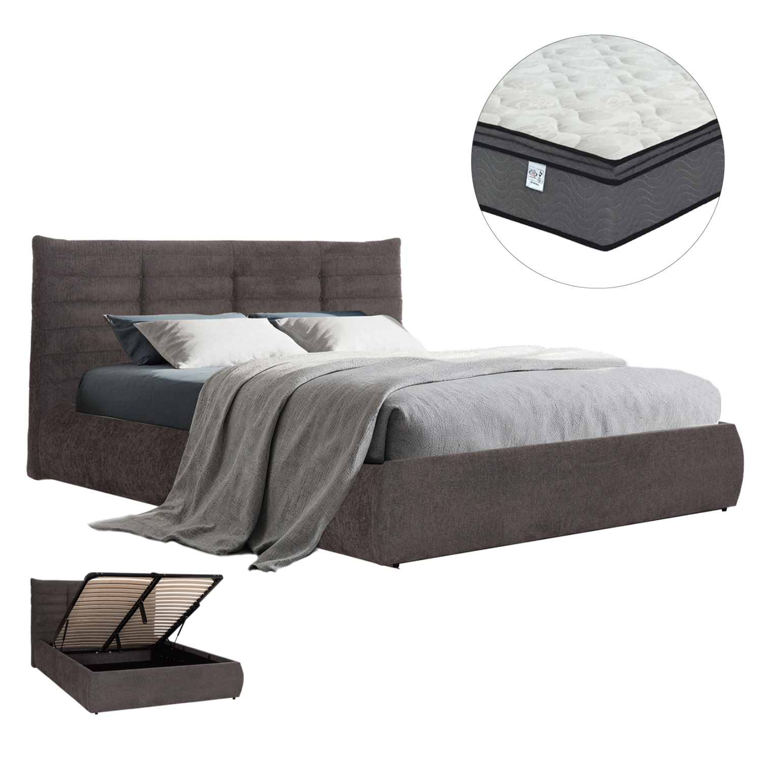 -Ο μηχανισμός του αποθηκευτικού χώρου είναι μεταλλικός και ανασηκώνεται με ανάρτηση (gas-lifts). Πάνω σε αυτό το μεταλλικό πλαίσιο τοποθετούνται και οι τάβλες του στρώματος.