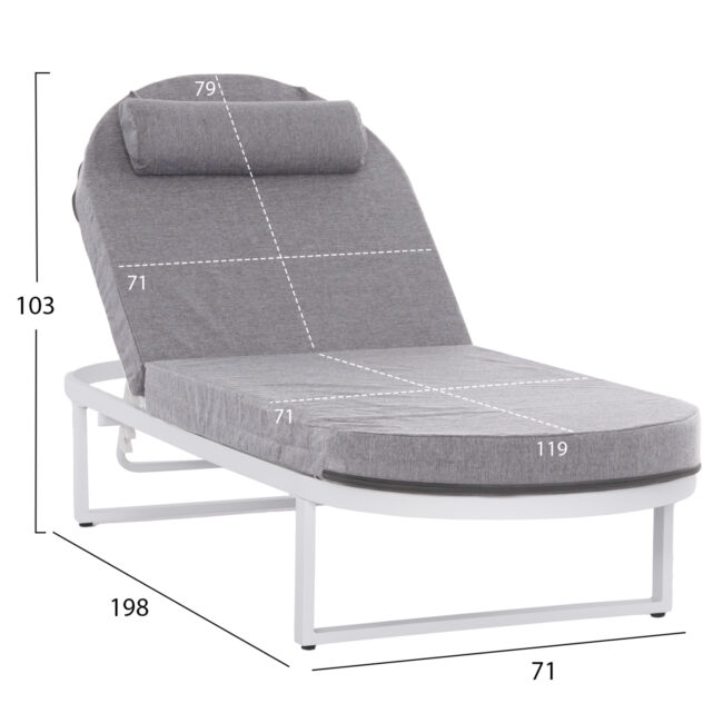 Ο σκελετός της ξαπλώστρας είναι κατασκευασμένος εξολοκλήρου από αλουμίνιο.