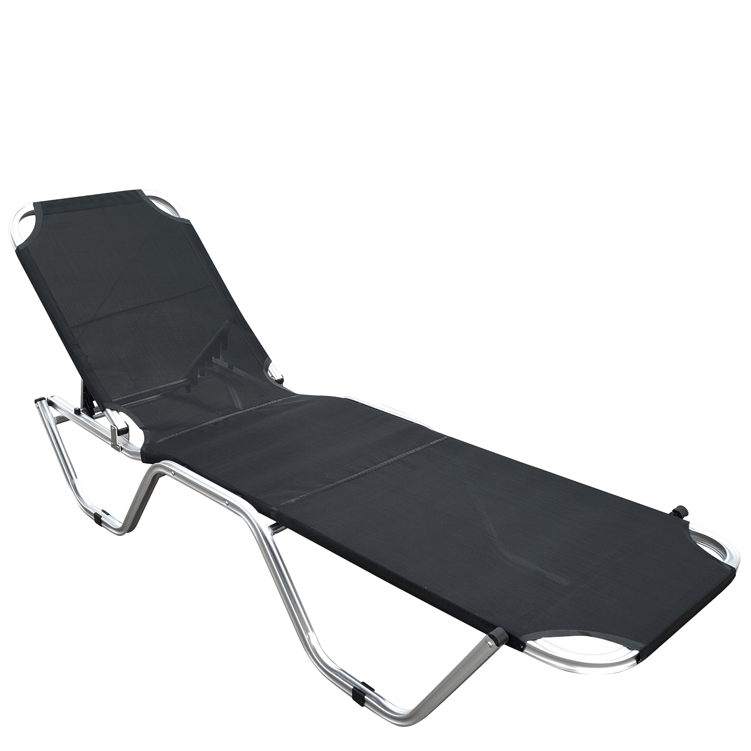 Η ξαπλώστρα διαθέτει ανθεκτικό αλουμινένιο σκελετό και επιφάνεια από Textilene, που εξασφαλίζουν αντοχή στις καιρικές συνθήκες. Η μαύρη και ασημί απόχρωση προσδίδει μια σύγχρονη αισθητική σε κάθε χώρο.