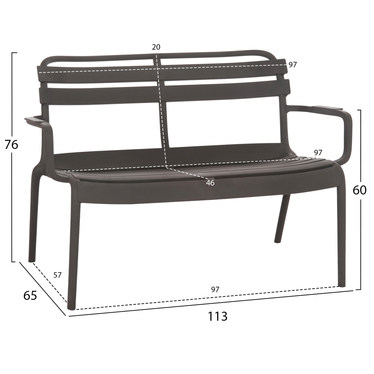 Το 2θέσιο παγκάκι εξωτερικού χώρου KORVER είναι εξολοκλήρου κατασκευασμένο από πολυπροπυλένιο σε DARK OLIVE GREEN χρώμα. Σχεδιαστικά, είναι λιτό με όμορφες καμπύλες, με πλάτη και μπράτσα, και μπορεί να χρησιμοποιηθεί με πολλούς τρόπους προσφέροντας μια πρακτική και ανθεκτική χρήση. Ιδανική πρόταση για χρήση σε εξωτερικούς χώρους, είτε επαγγελματικούς (χώροι δεξιώσεων, εταιρείες catering, κλπ.) είτε για το σπίτι.