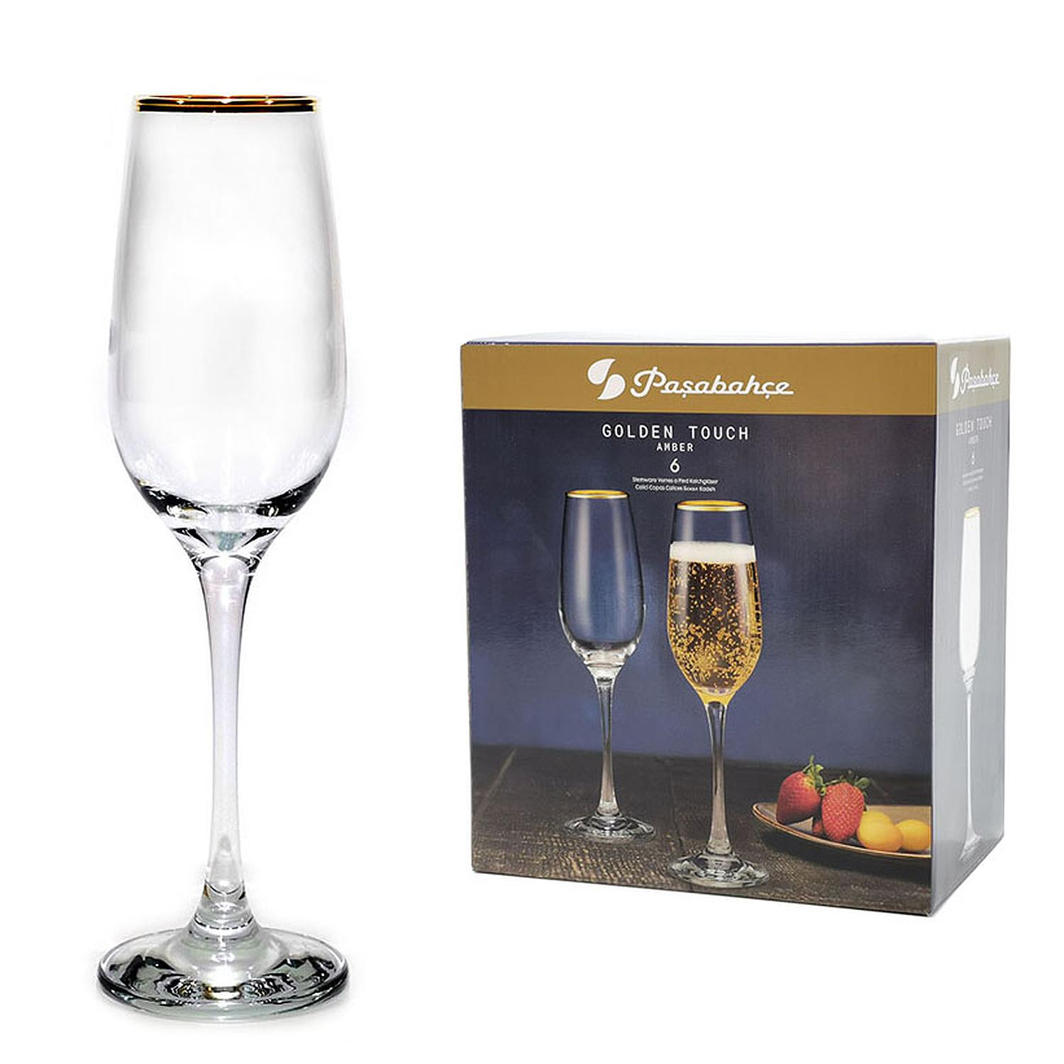 Ποτήρι Σαμπάνιας 20cl Με Χρυσό Στόμιο Διάφανο Γυαλί Σετ 6Τμχ
