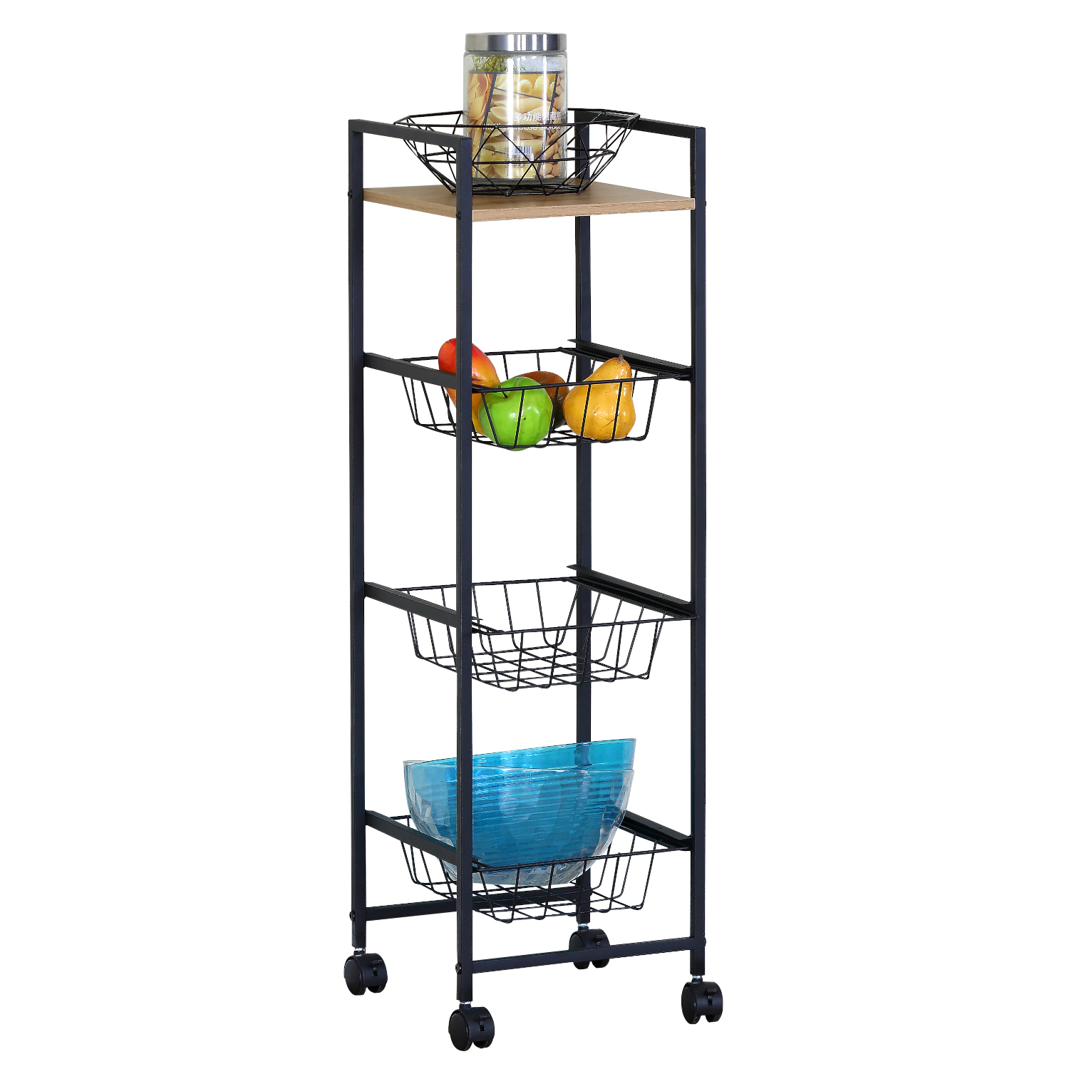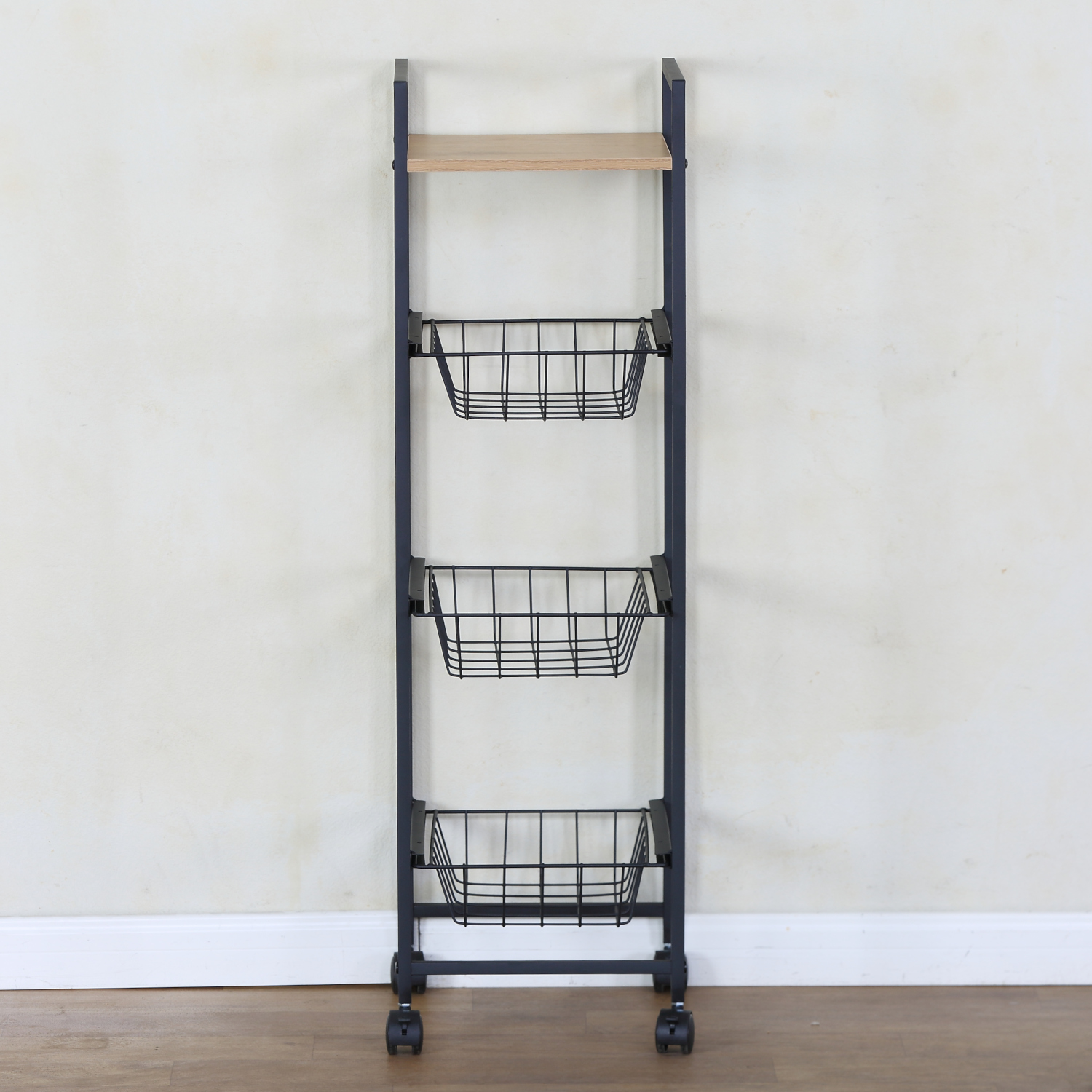Κατασκευασμένη από μοριοσανίδα υψηλής ποιότητας με φινίρισμα δρυός και ανθεκτικό μαύρο μέταλλο, η ραφιέρα εξασφαλίζει σταθερότητα και μακροχρόνια χρήση. Οι τροχοί προσφέρουν ευκολία στη μετακίνηση και την ευελιξία στη χρήση.