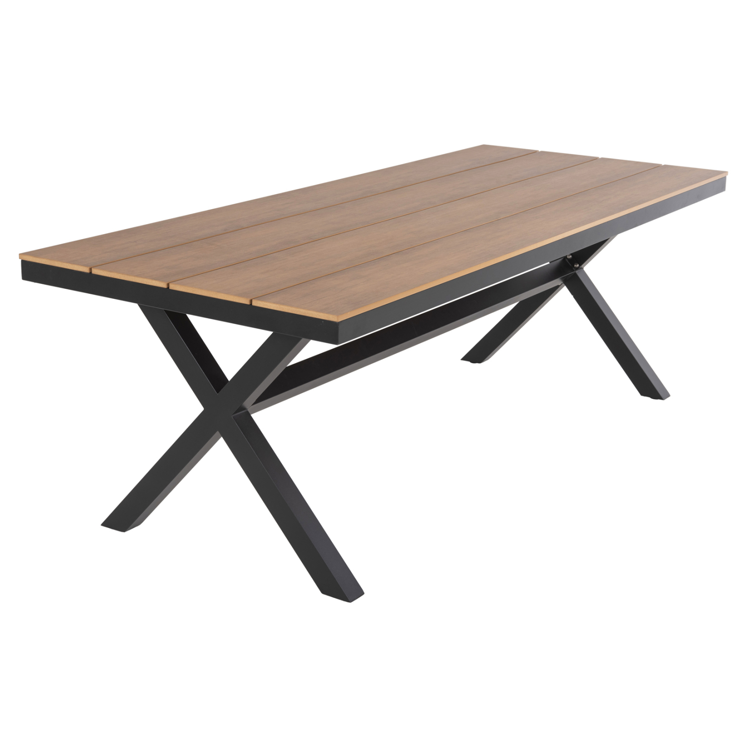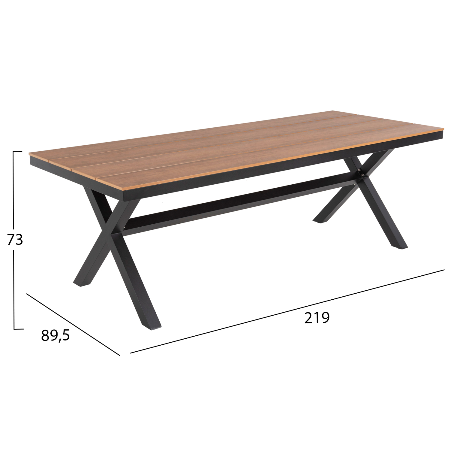 Το TAWNEE είναι ένα μεγάλο ορθογώνιο τραπέζι για εξωτερικούς χώρους με σκελετό αλουμινίου σε χιαστί διάταξη ποδιών που συνδέονται με μια μπάρα αλουμινίου και έχει ΑΝΘΡΑΚΙ χρώμα. Η επιφάνεια είναι από πλάκες polywood σε ΦΥΣΙΚΟ χρώμα ξύλου. Πρόκειται για ένα όμορφο τραπέζι σε μεγάλη διάσταση, που μπορεί να εξυπηρετήσει 8 άτομα. Εσείς απλά βρείτε τις καρέκλες ή πολυθρόνες που ταιριάζουν και απολαύστε όμορφες στιγμές.