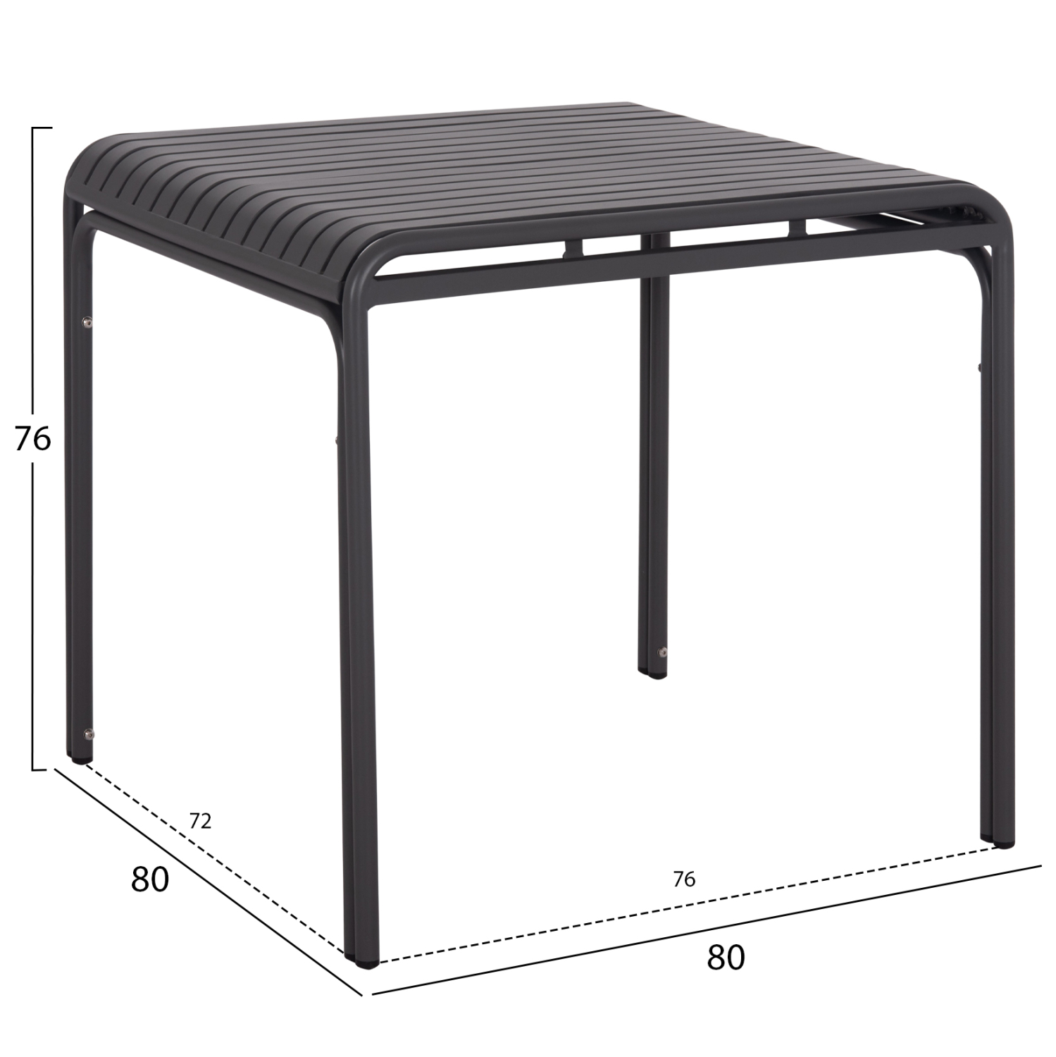 Το τετράγωνο τραπέζι RACHEL είναι εξολοκλήρου κατασκευασμένο από αλουμίνιο σε ΓΚΡΙ χρώμα. Σχεδιαστικά, είναι λιτό με όμορφες καμπυλωμένες άκρες και ενισχυμένο διπλό σκελετό. Συνδυάστε το με ανάλογης αισθητικής καρέκλες, πολυθρόνες ή ακόμα και παγκάκια και δημιουργήστε μια όμορφη εικόνα στον εξωτερικό σας χώρο!