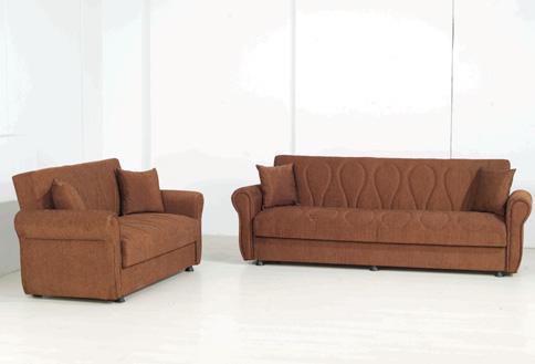 Σαλόνι 2 τεμαχίων (τριθέσιος – διθέσιος) Ο τριθέσιος καναπές γίνεται και κρεβάτι. Και οι 2 καναπέδες έχουν αποθηκευτικό χώρο και συνοδεύονται από 2 μαξιλαράκια. Παράγεται σε 4 χρώματα